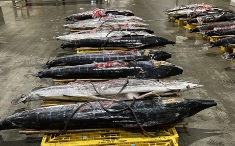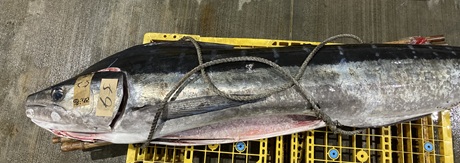 1尾の大きさは30kg~60kgが主体で20~30本程の水揚げがあります。