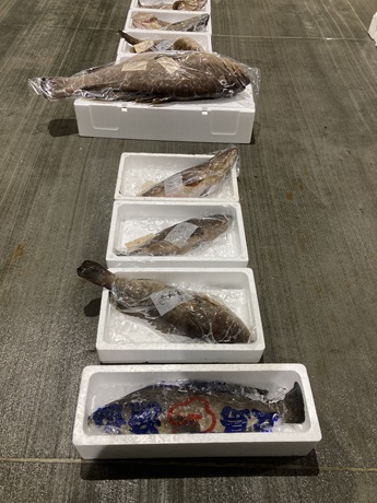 長崎魚市ではクエが入荷しています。1尾の大きさは3kg~10kgを中心に水揚げされています。